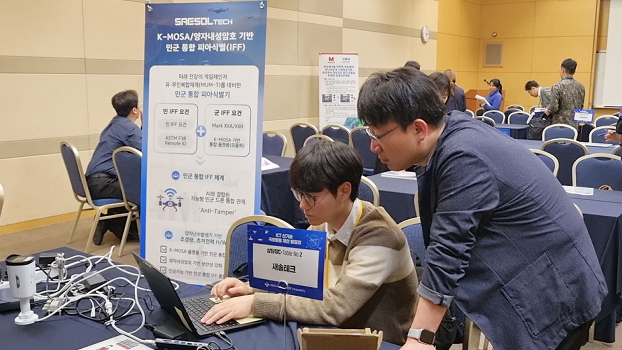 안녕하세요 새솔테크입니다. 지난 22일 대전 컨벤션 센터에서 개최된 '정보통신기술(ICT) 신기술 국방활용 제안 발표회'에 새솔테크가 참여했습니다. 이번 행사는 국방부가 주최하고 국방기술진흥연구소가 주관하는 행사로, 국방영역에서 활용 가능성이 큰 우수 ICT 신기술을 군 관계자들에게 직접 제안하는 행사로 총 106개 기관이 참여하였습니다. 새솔테크는 이번 행사에서 국정원 인증 KCMVP 검증필 암호화 모듈 SSCrypto V1.0을 응용한 ‘실시간 CCTV 구간 암호화 서비스’ […]