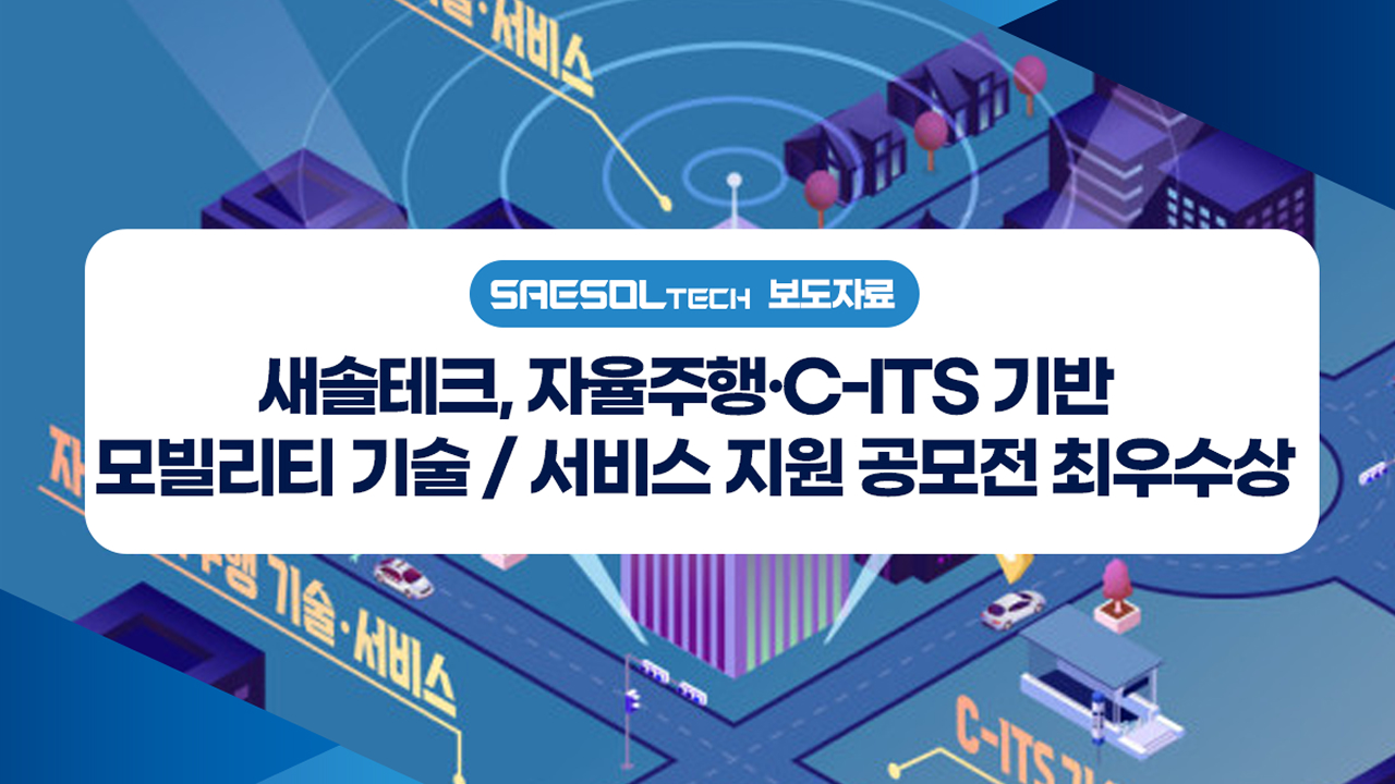 자율주행·커넥티드카 통합 보안 솔루션 전문기업 새솔테크(대표 한준혁)가 최근 국토교통부 주최 '자율협력주행·C-ITS(차세대지능형교통체계) 기반 모빌리티 기술 및 서비스 지원 공모전'에서 최우수상을 받았다고 10일 밝혔다. 이 공모전은 공공데이터(리빙랩 및 C-ITS)의 활용성 증대를 위해 열렸다. 리빙랩 플랫폼 데이터를 기반으로 자율협력주행·C-ITS 관련 모빌리티 신기술 및 사업 모델을 발굴·지원하는 것을 목적으로 한다. 새솔테크는 기술 수준, 창의성, 실효성 등에서 전반적으로 우수한 평가를 […]