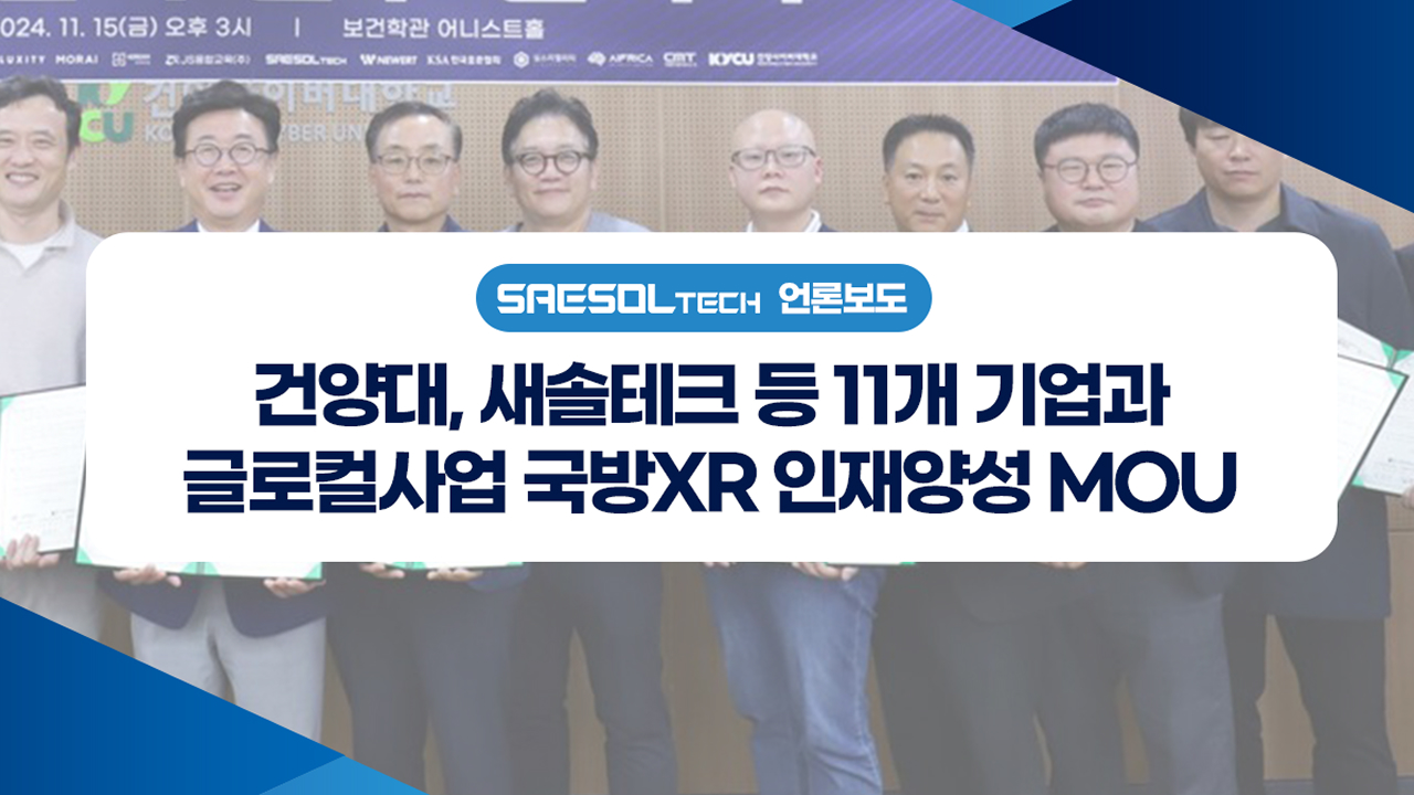 건양대학교가 지난 15일 메디컬캠퍼스 보건학관 어니스트홀에서 ㈜뉴워트, ㈜모라이, ㈜모아소프트, ㈜심스리얼리티, ㈜심시스글로벌, 씨엠티정보통신㈜, 새솔테크㈜, ㈜에이프리카, 제이에스융합교육㈜, ㈜포드림, ㈜플럭시티 등 총 11개 기업과 국방XR 분야 인재 양성을 위한 교류협약(MOU)을 체결했다. (중략) 기사 자세히보기: https://www.ggilbo.com/news/articleView.html?idxno=1059713 금강일보 / 최인석 기자