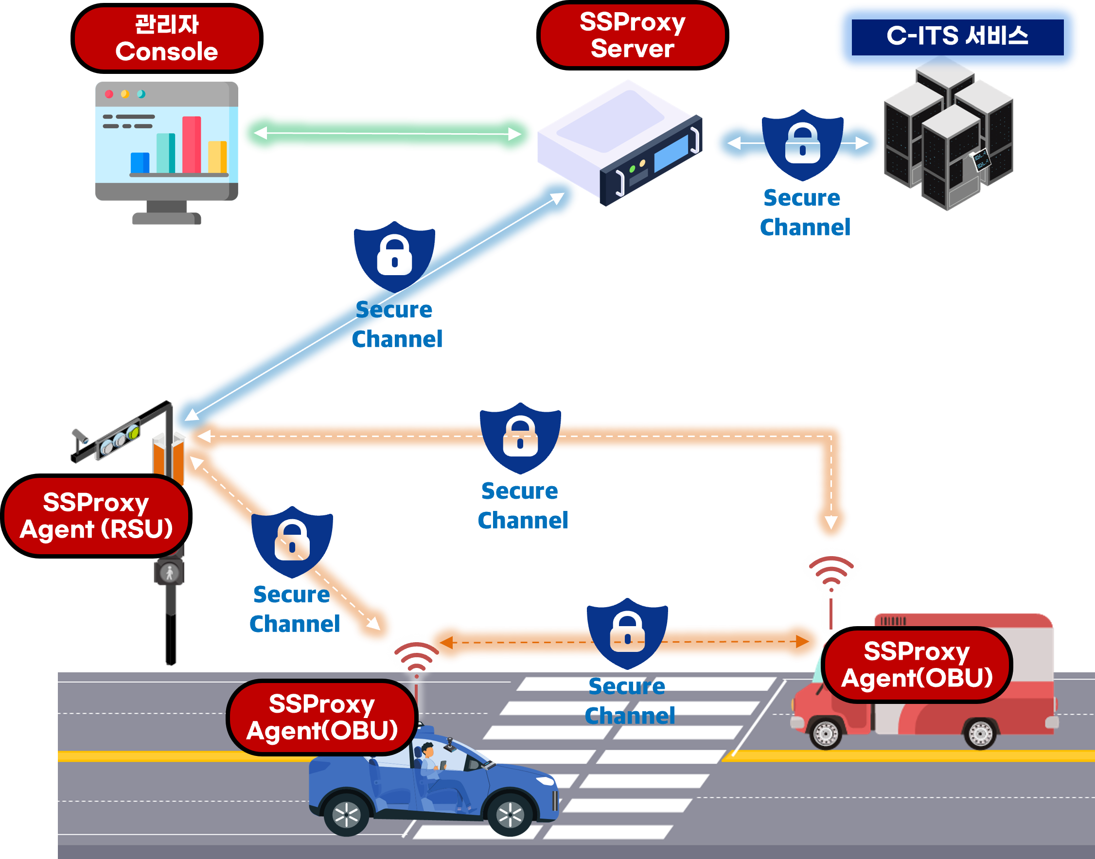 S2X Secure Link : ISO 21177 은 ITS를 구성하는 장치 간에 발생하는 소스에 대한 인증, 애플리케이션 활동의 기밀성 및 무결성을 보장하는데 필요한 보안 서비스를 제공하고 강력한 통신구간보안을 제공합니다.